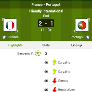 - كرة القدم مباريات في التفاصيل: اكتشاف الحية إحصاءات مباراة وملخصات وأوراق الفريق، وأسماء الهدافين، المارة ومشط لاعبين (البطاقات الصفراء والحمراء، الخ)، بالإضافة إلى أشرطة الفيديو هدف!