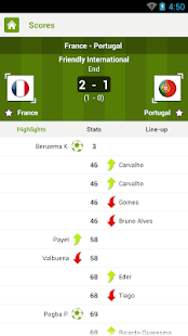 - كرة القدم مباريات في التفاصيل: اكتشاف الحية إحصاءات مباراة وملخصات وأوراق الفريق، وأسماء الهدافين، المارة ومشط لاعبين (البطاقات الصفراء والحمراء، الخ)، بالإضافة إلى أشرطة الفيديو هدف!